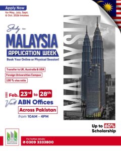 With 15 offices across Pakistan and an international branch in Dubai, ABN offers nationwide access to expert guidance. As professional Overseas Education Consultants in Pakistan, we support students in setting academic goals, selecting the right course and university, preparing complete applications, and securing exclusive scholarships. Our commitment to transparency, ethics, and student success makes ABN a preferred choice for study abroad support.